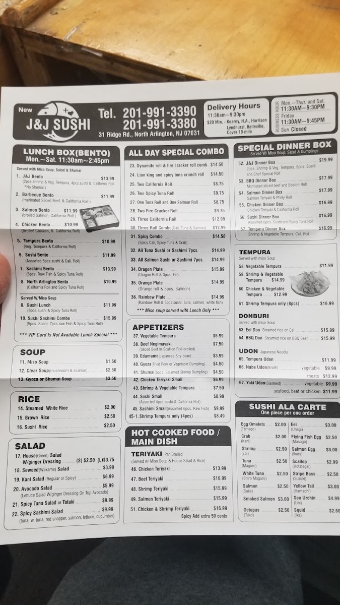 Introducing J&J Sushi, a hidden gem nestled at 31 Ridge Rd, North Arlington, NJ. Renowned for its selection of fresh, high-quality sushi, this establishment offers an impressive menu that caters to both traditional and adventurous palates.